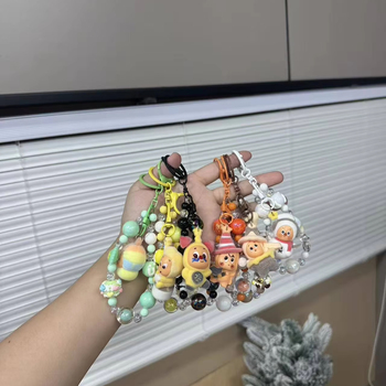 LLavero creativo de cadena de teléfono móvil con cuentas de muñeca de dibujos animados colgante de plástico para bolsa de libros y pareja de llaves de coche regalos colgantes
